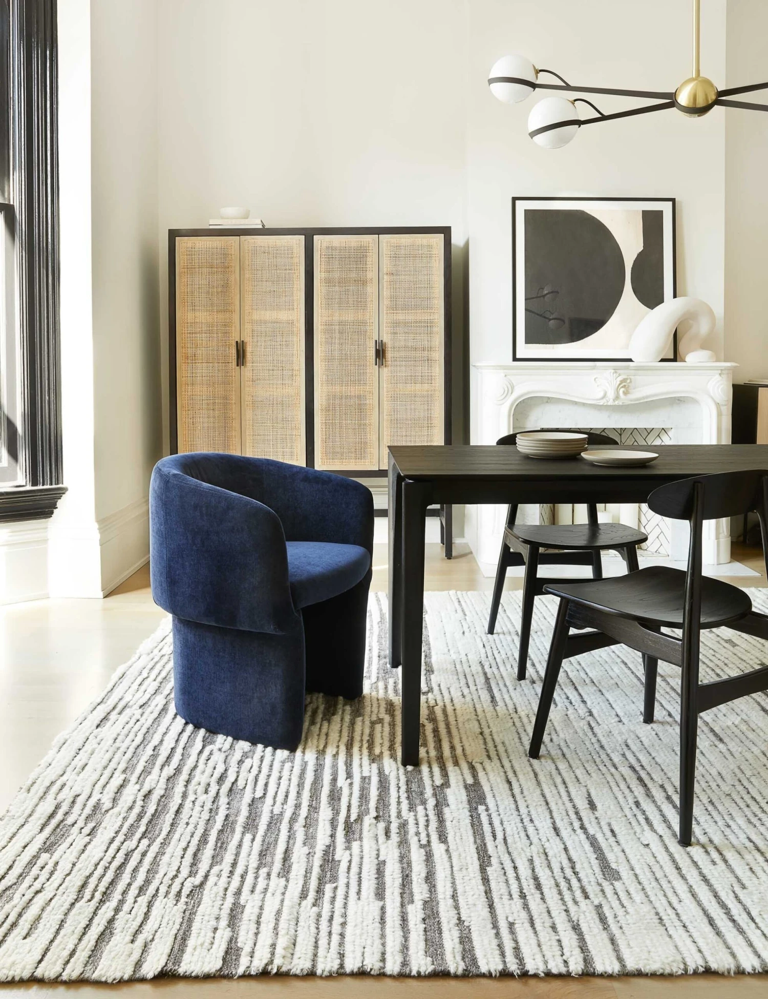 Globe shades and brass hardware give this ceiling light a retro-inspired look that won’t leave your space feeling dated. The soft glow created by the glossy opal shades is perfect for bringing a little drama to your dining room, entry, or kitchen island by way of overhead lighting.