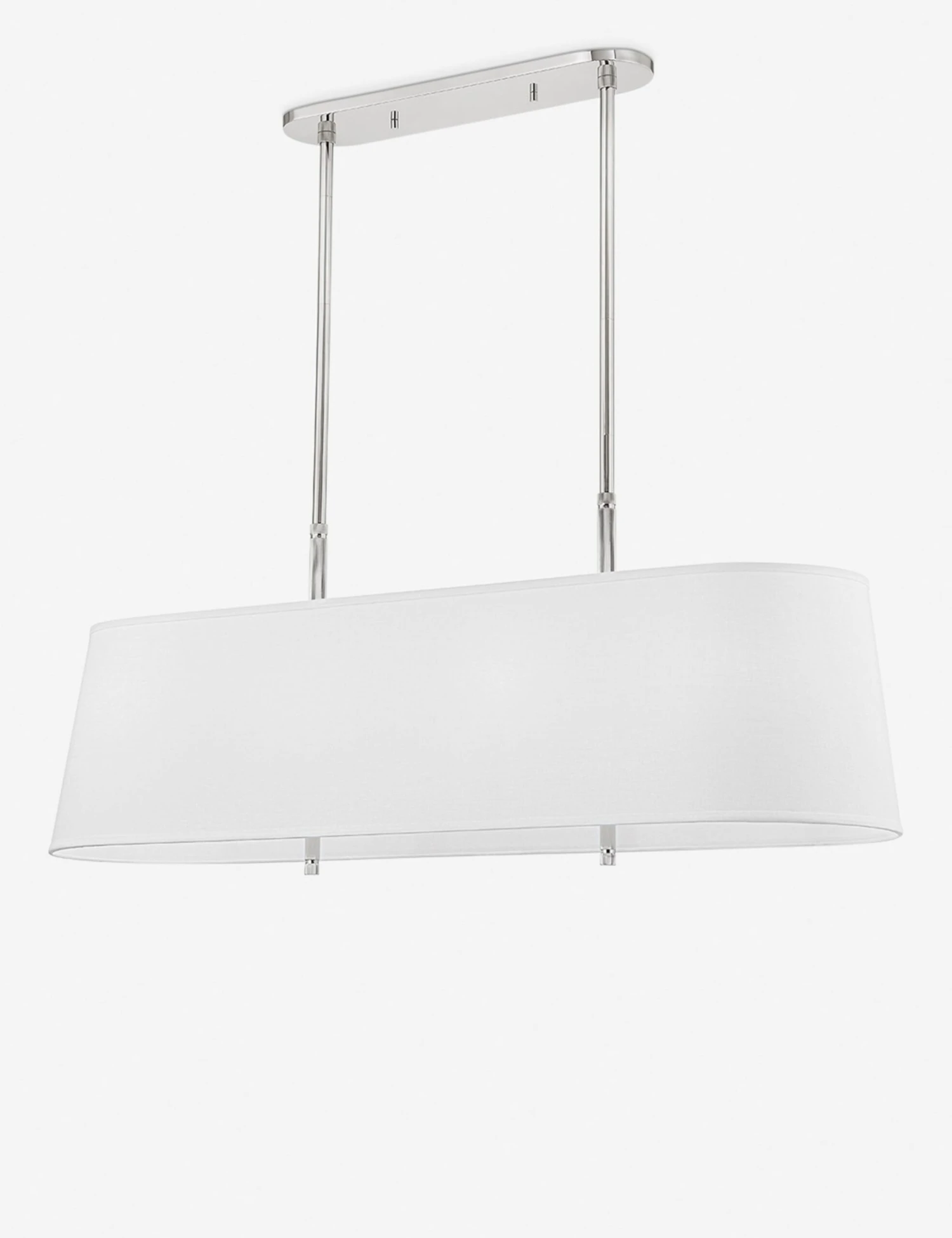 This chandelier offers a ceiling fixture with a clean and simple silhouette filled with textural details like ridged accent pieces and tidy knurling. Finished in antique bronze paired with brass accents and contrasted with a white Belgian linen shade to offer brilliant overhead lighting for a dining room or living space.