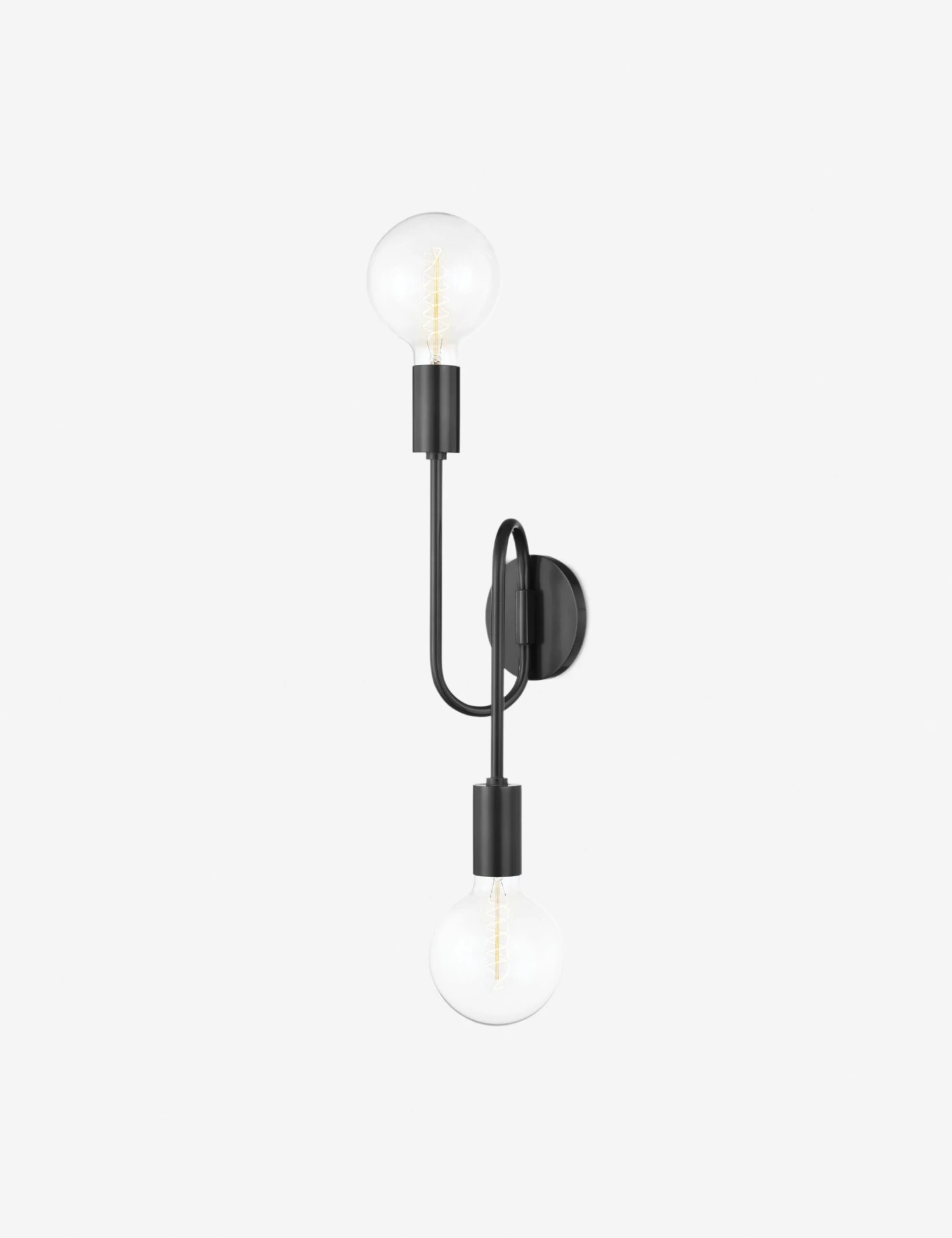 A looped, two-light design makes this Keanu Sconce stand out amongst your wall decor. Paired with frosted glass shades, this sconce light is an excellent accent to style in a bathroom, on a mantel, or bookending a sideboard.