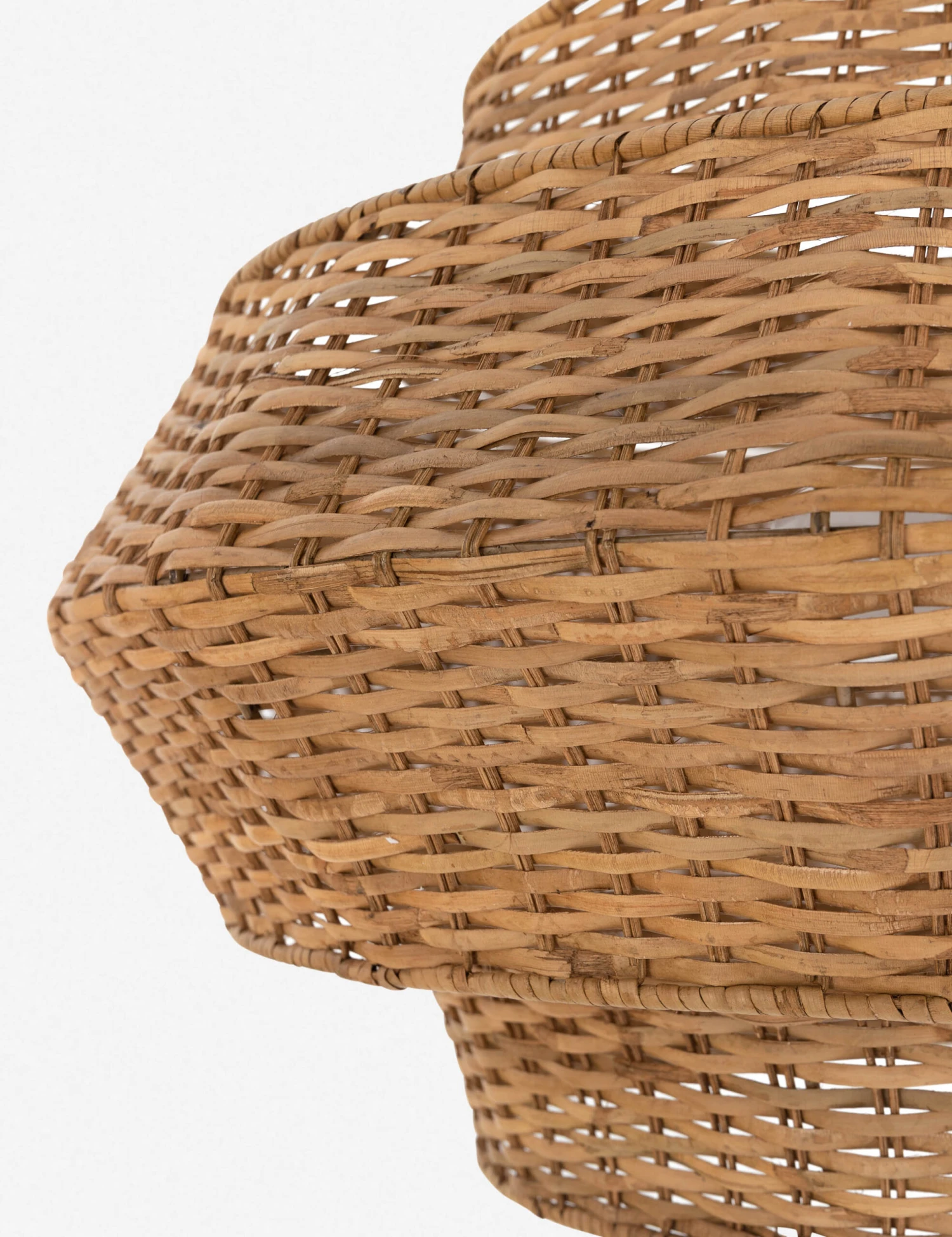 This beautiful rattan pendant light fixture features a shapely drum-style shade with layers of natural woven texture. Ideal as a centerpiece pendant to hang above a dining room or kitchen table, plus, a brass-finished chain offers a refined finishing touch.