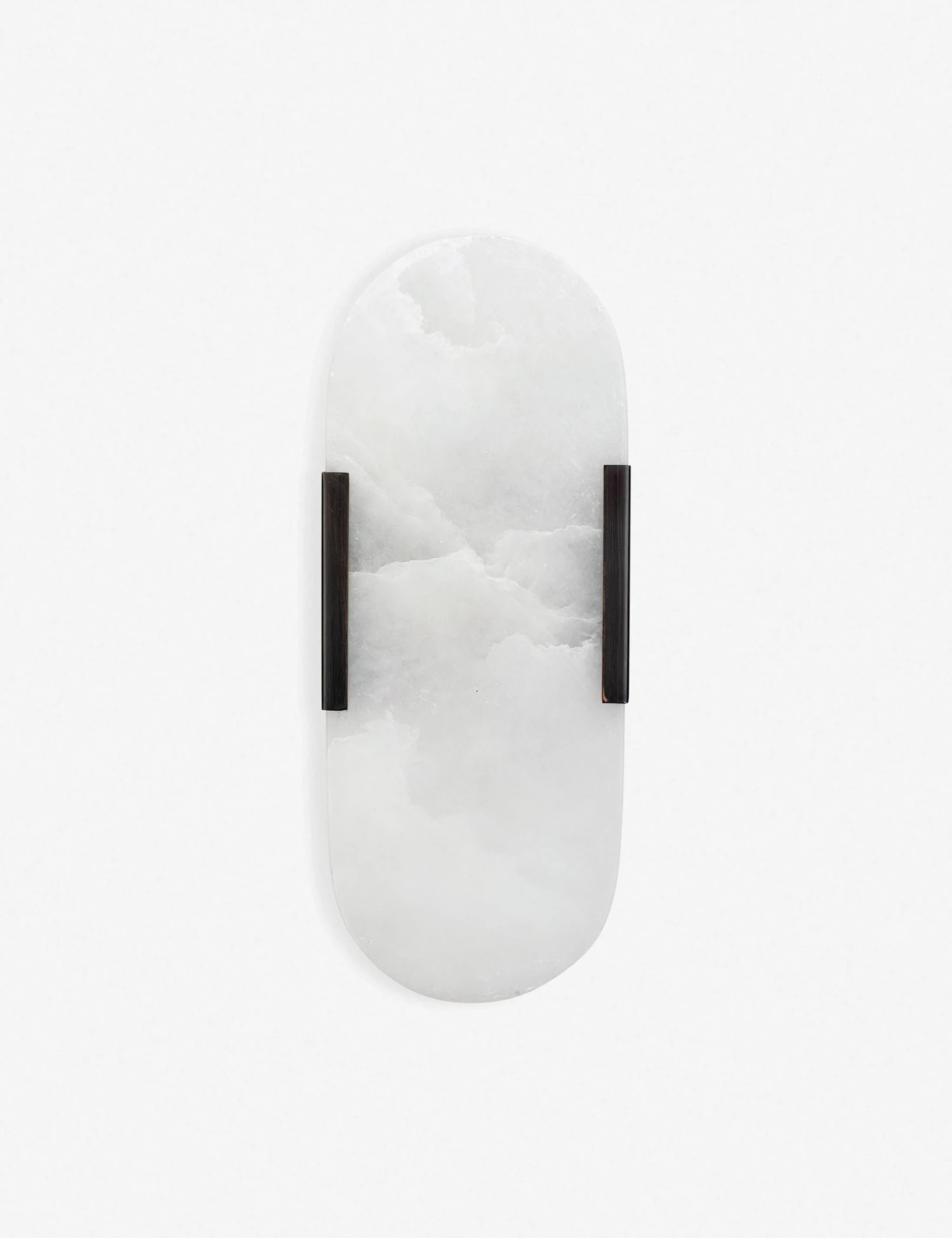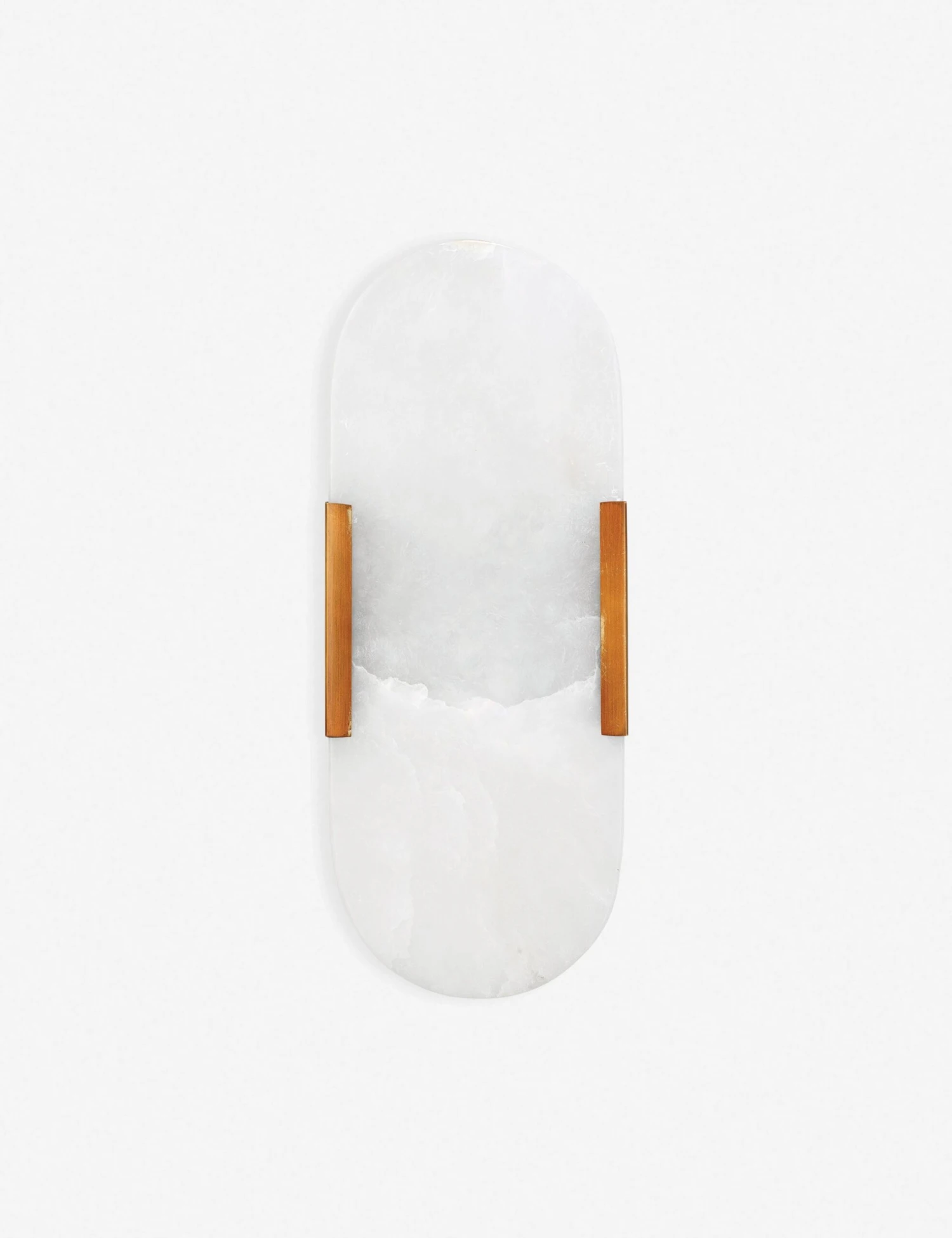 Smooth rounded lines complement the diffused light cast by this alabaster wall sconce. The finish of the hardware outfits this sconce with a timeless appeal that will elevate your lighting scheme with its polished charm.