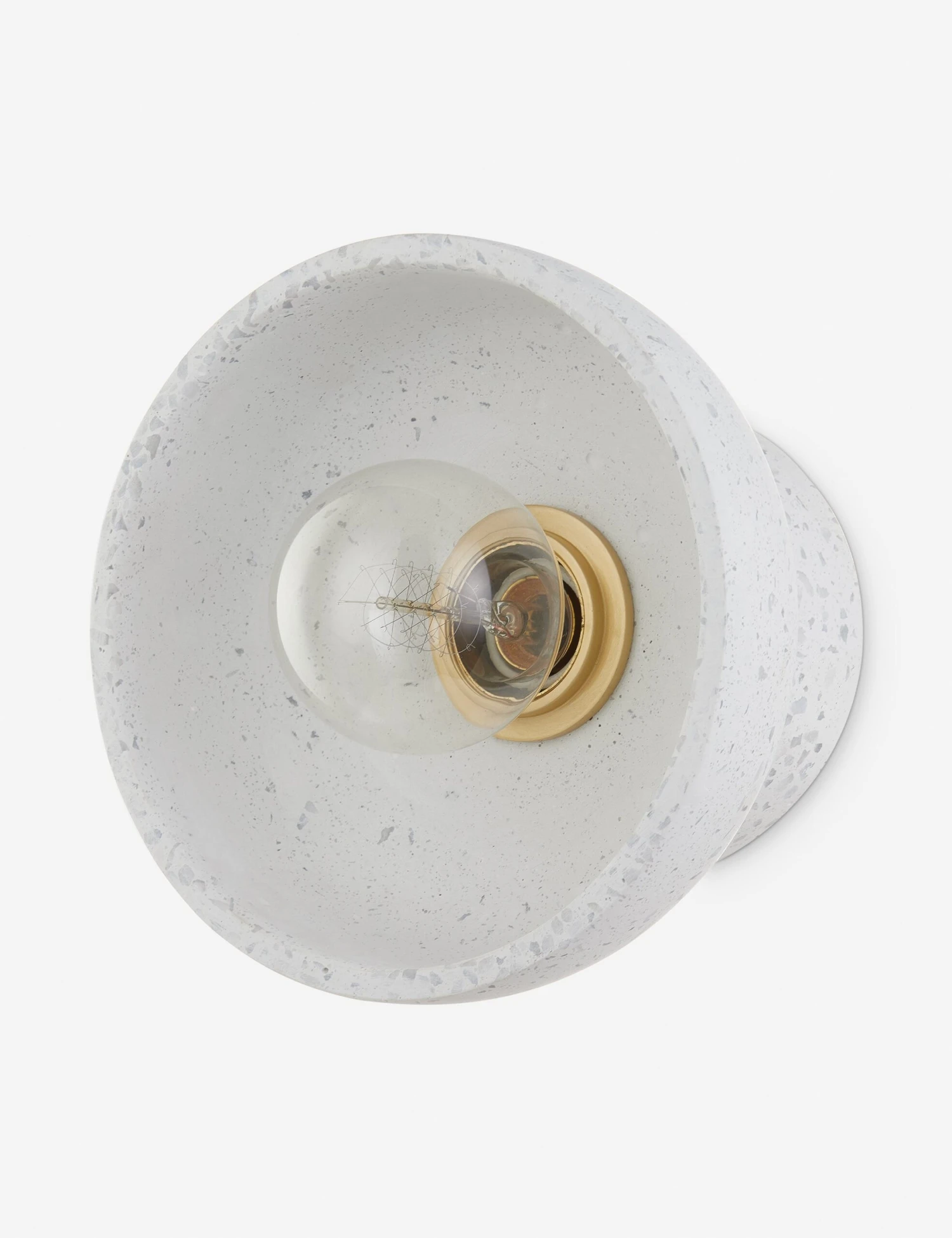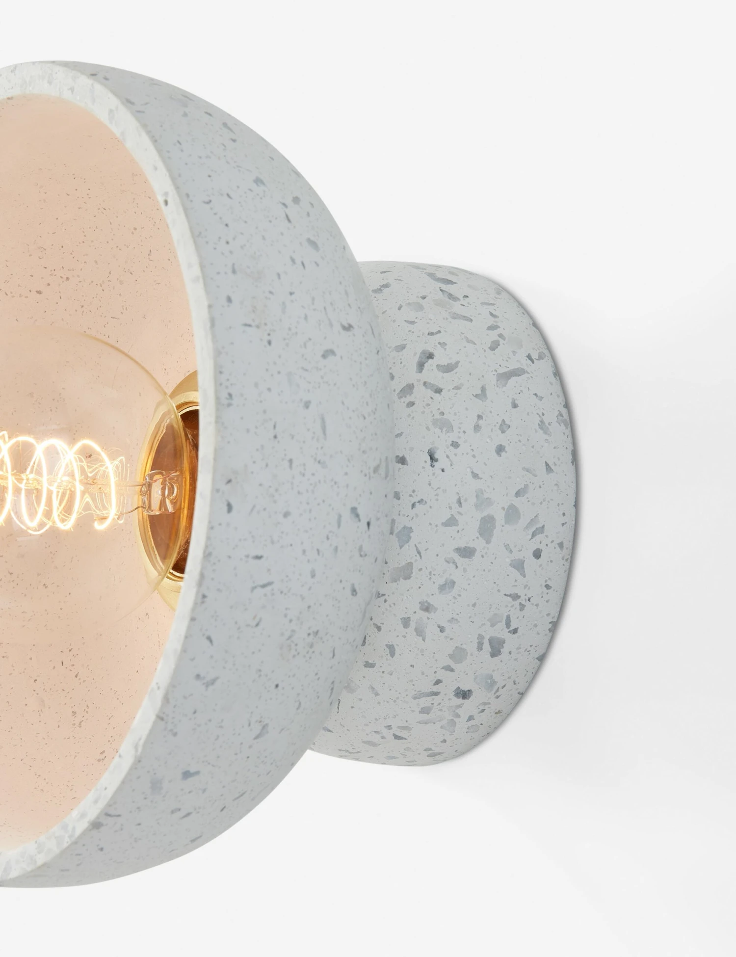 Blue-gray terrazzo brings a mineral appeal to the soft, modern lines of the Serrano lighting collection. This bowl-like sconce offers a sculptural feature that will gently elevate with understated elegance. We love this sconce light styled in multiples for wall lighting with an architectural feel.